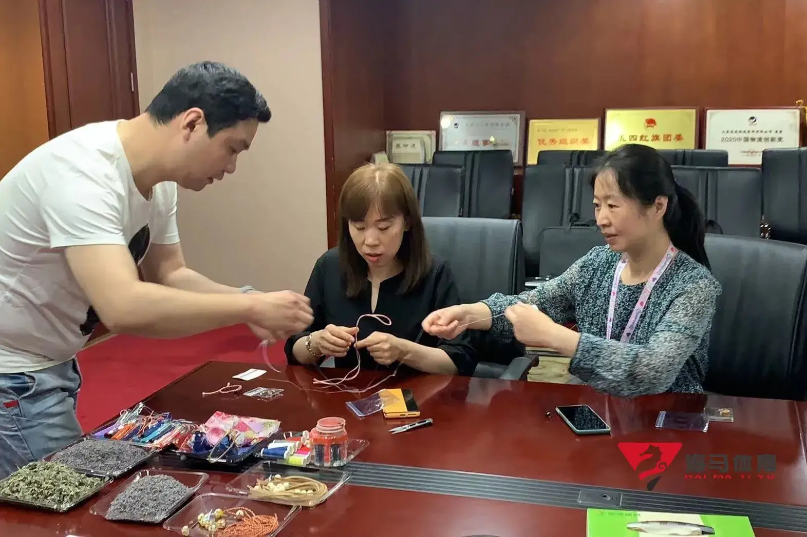 制作前,耀世娱乐的手工老师首先介绍了端午的习俗以及端午节制作香囊与五彩绳的来历,让大家在活动前了解端午的民俗文化,手工老师将精心准备的有着美好寓意的五色彩绳、色彩绚丽的香包袋以及清香的艾草薰衣草,送到职员手中,携手制作香包和五彩绳。